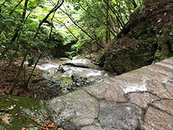 この橋から順調に進めば地蔵平までは10分程度。"順調に進めば…" と記したのは、途中で沢が林道を寸断し、ルートファインディングをミスる可能性がある理由による。